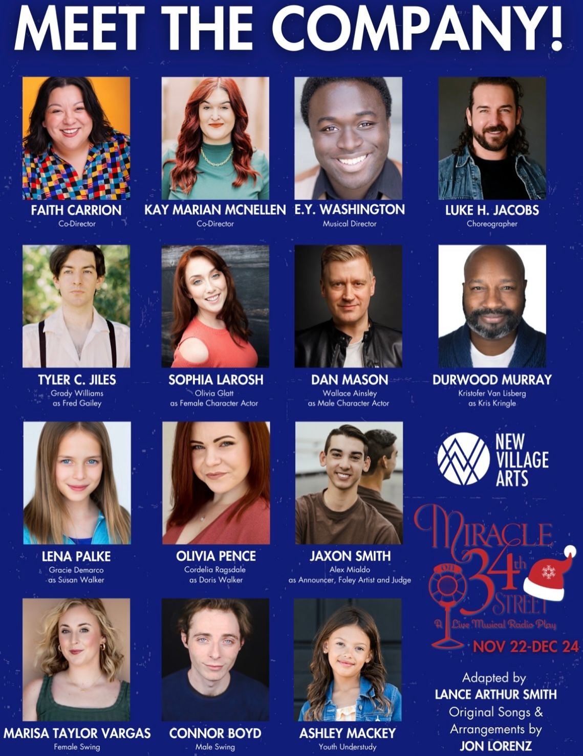 This holiday season, the Dea Hurston New Village Arts Center brings a beloved classic to life with Miracle on 34th Street: A Live Musical Radio Play. Created by San Diego artists Jon Lorenz and Lance Arthur Smith, this unique adaptation captures the nostalgic charm of a live radio show, complete with Foley effects and a score of holiday carols to warm even the most skeptical hearts.