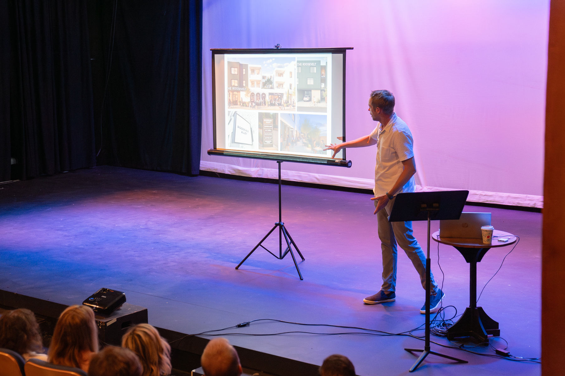 Brendan gave a preview of two upcoming projects. The Roosevelt, a mixed-use development planned for Roosevelt Street, will bring 23 residential units, retail space, and a public plaza to the heart of downtown. He also introduced BLVD | BEACH, a sustainable project planned for the corner of Carlsbad Boulevard and Beech Avenue. With ground floor retail, an upstairs event space, and a rooftop terrace, it’s designed to serve locals and visitors while blending seamlessly into the Village’s character.