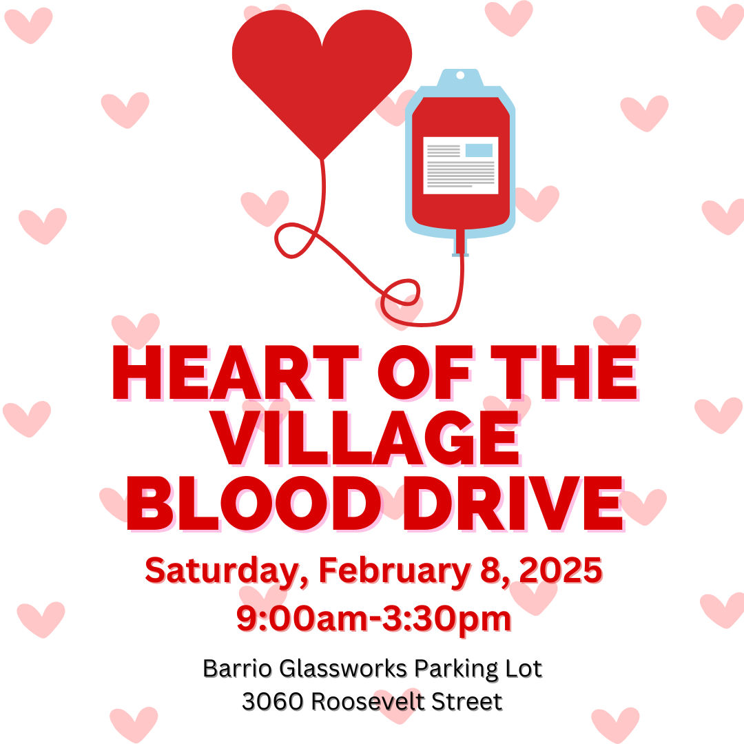 On Saturday, February 8th, the Heart of the Village Blood Drive will take place at the Barrio Glassworks parking lot (3060 Roosevelt Street, Carlsbad) from 9:00 AM to 3:30 PM. We’ve already filled nearly half of our available appointments, but we still need your help to make this a truly life-changing event.