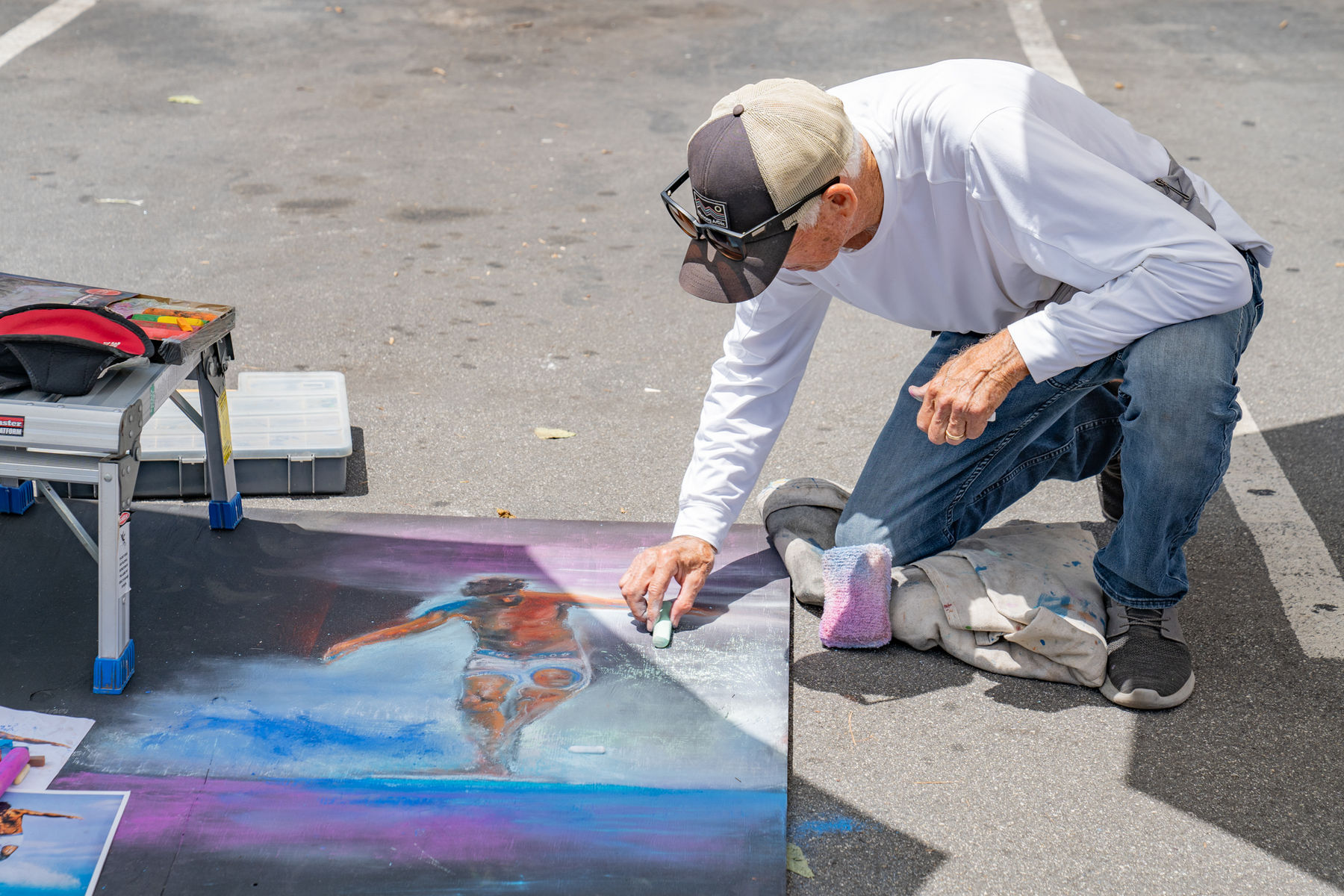 On Saturday, August 30th from 9:00 a.m. to 5:00 p.m. at the Village Faire Shopping Center, five renowned local and regional chalk artists Katie Bush, Cecelia Linayao, Meg Beverly Canilang, Phyllis Swanson, and Ron Juncal, will each transform a 4-by-4-foot prepared board into a vivid chalk mural inspired by this year’s theme, “Final Days of Summer.” Guests will have the rare opportunity to watch these artists bring their visions to life in real time.
