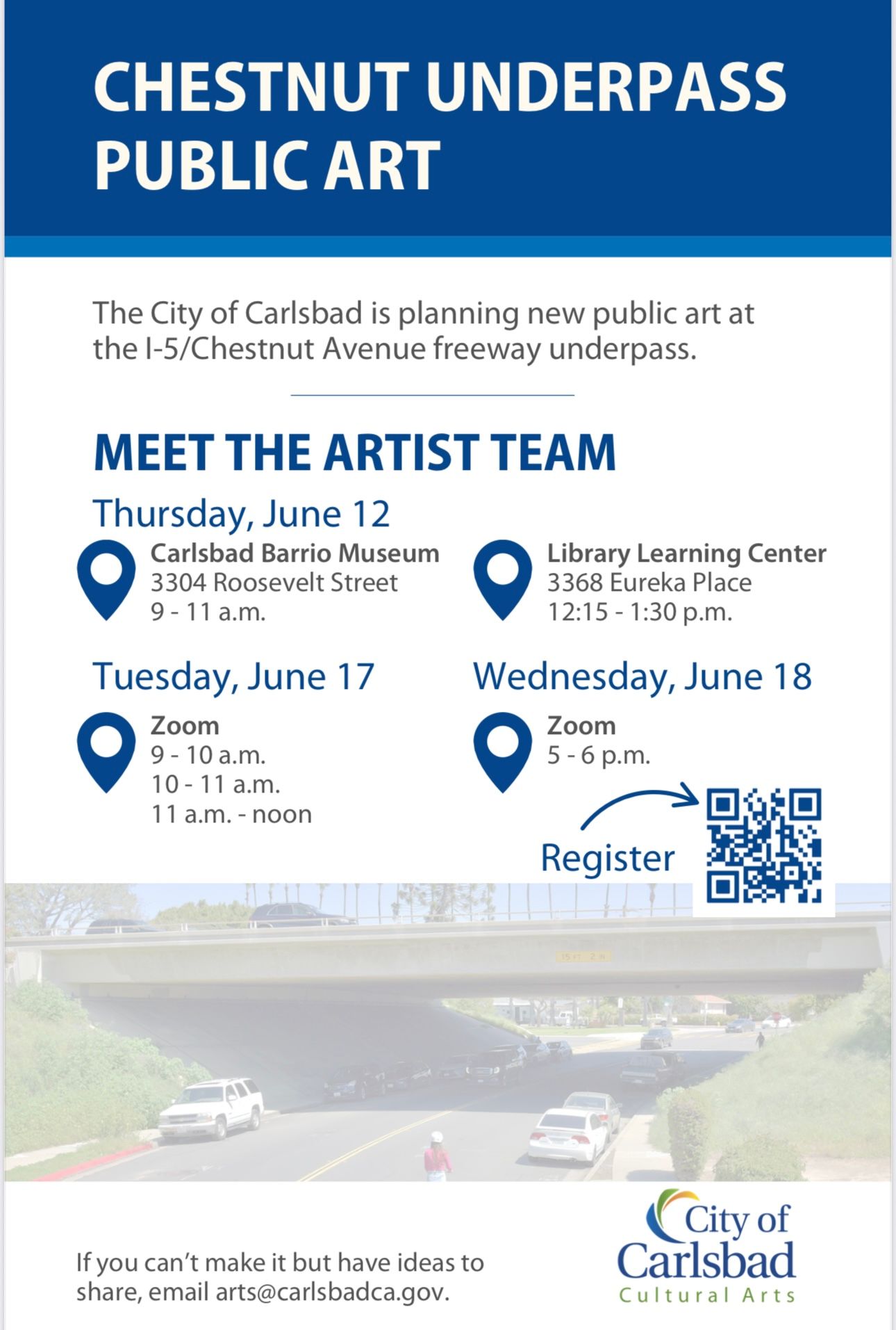 Learn more and see the full project schedule: carlsbadca.gov/chestnut-underpass-public-art