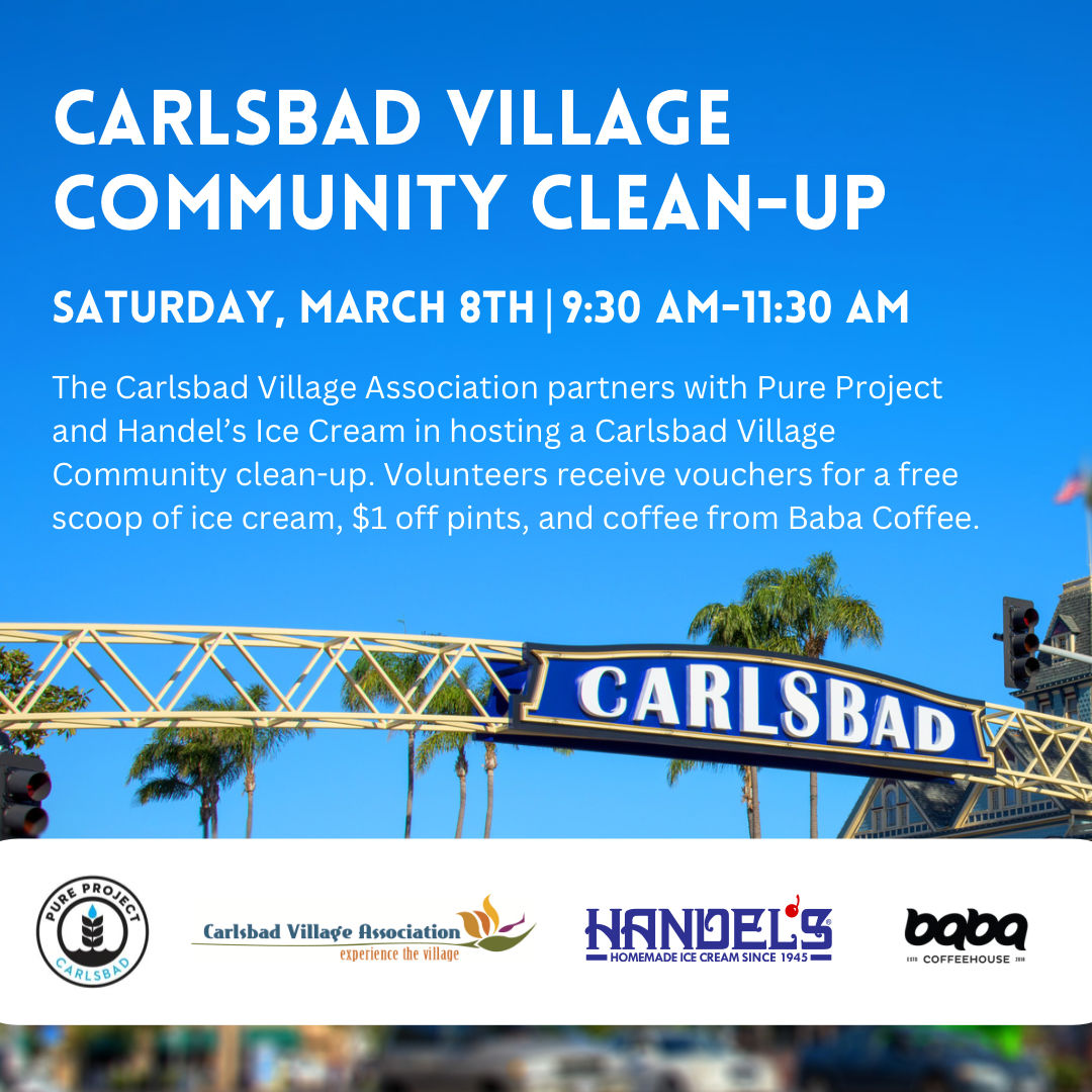 The Carlsbad Village Community Clean-Up returns this Saturday, March 8th, from 9:30 AM to 11:30 AM, and we’re on the verge of an exciting milestone. With the support of Pure Project Carlsbad and Handel’s Carlsbad, volunteers have already collected 2,990 pounds of trash from the Village. Just 10 more pounds will push us past the 3,000-pound mark, and this clean-up could be the one that gets us there.